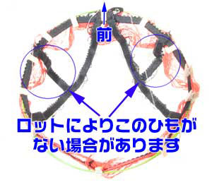ロットによってベースのゴムヒモが黒の場合と赤の場合があります。