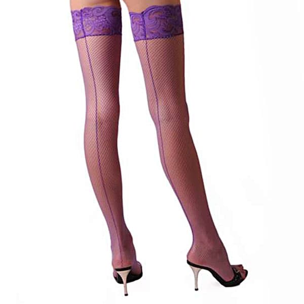 [滑り止めシリコン付レーストップ バックシーム網ストッキング・紫]