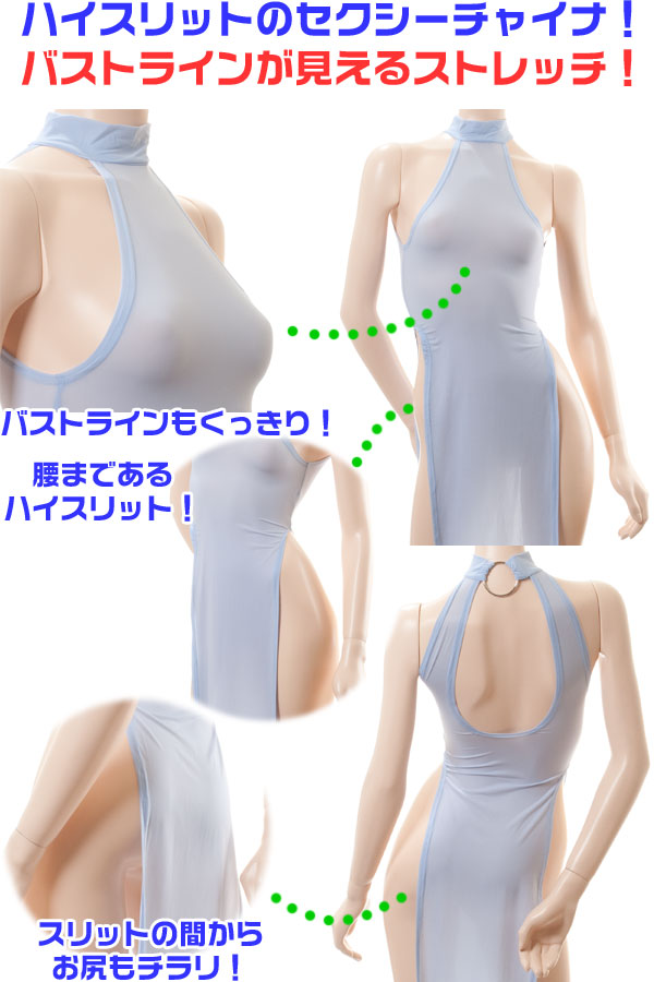 ストレッチ素材でボディにぴったりフィット!腰まであるロングスリットが彼のハートを揺さぶります!