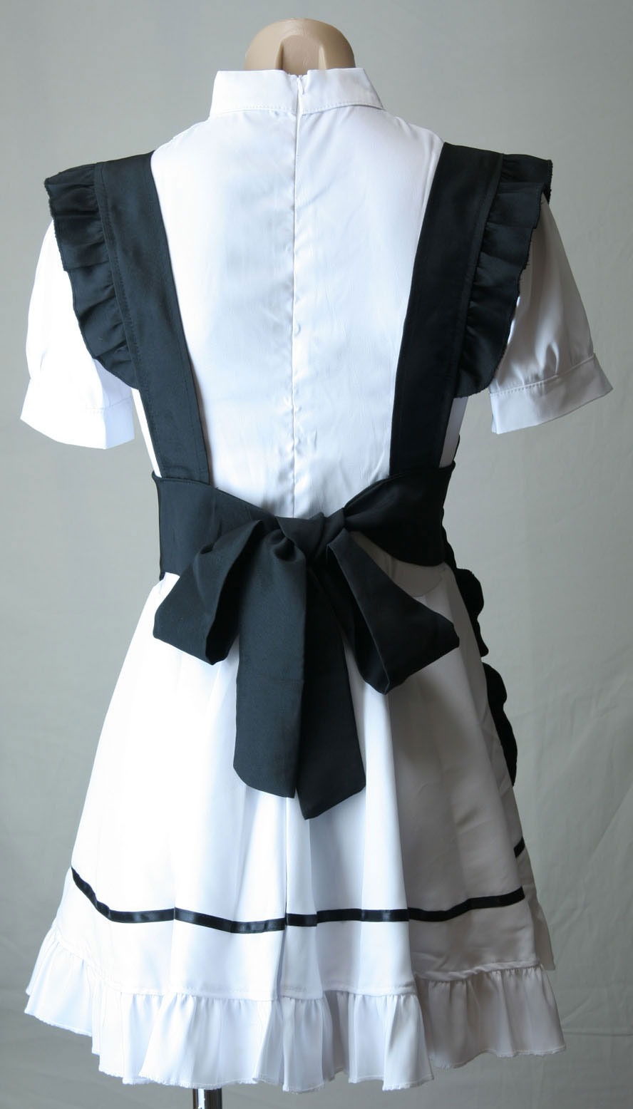 真っ白いドレスに黒いエプロンが素敵なメイド服です。