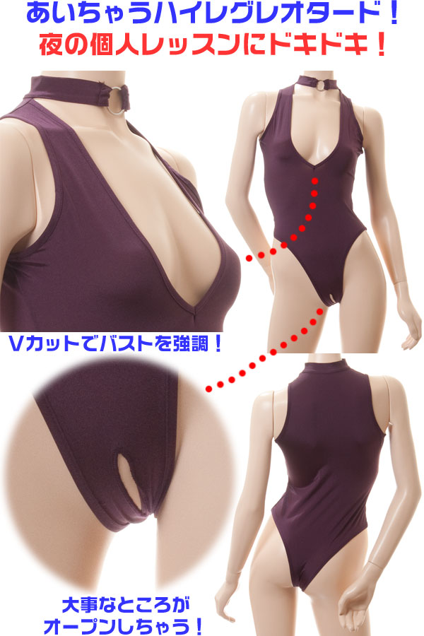 2177 [あいちゃう!オープンクロッチ Vカット レオタード・黒]