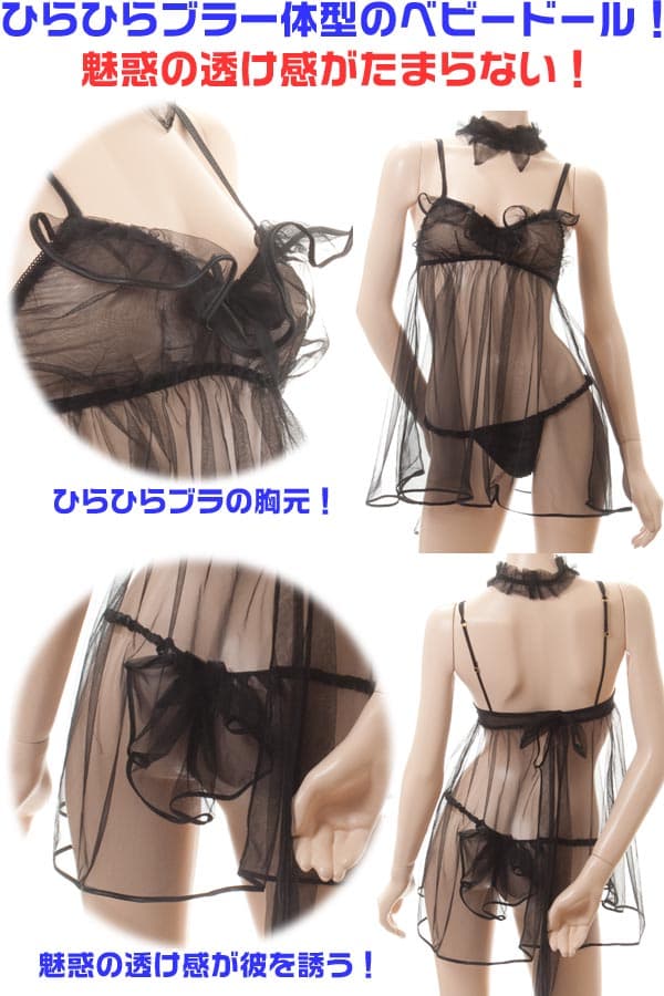 ブラ一体型 魅惑のシースルーベビードール・黒