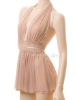 ホルターネック Vライン ショートドレス・ライトブラウン