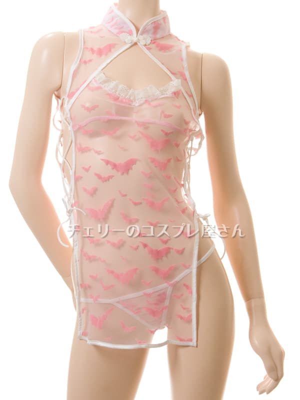 サイド編み上げ シースルー ショートチャイナドレス・ピンク