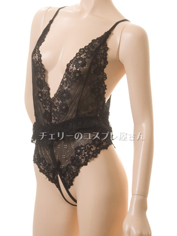 [フリルレースのワイドオープンクロッチ テディ・黒(S〜L)]
