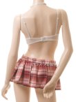 チェックの制服風オーブンバストブラ&ミニスカートセット・赤 イメージ写真4