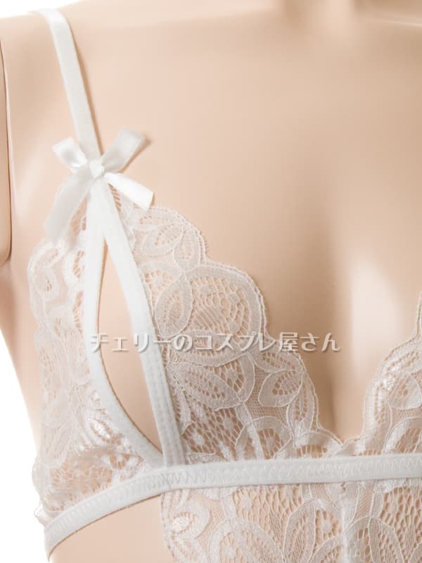 上も下も見えちゃう!総レースのオープンバスト&オープンクロッチ テディ・白