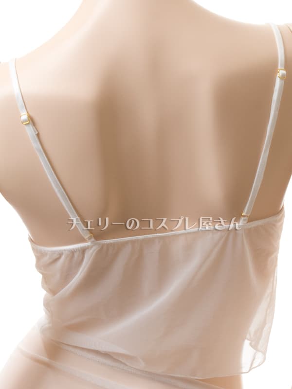 セミシースルーのキャミソールはショート丈で、すっきりシンプルなデザインです。