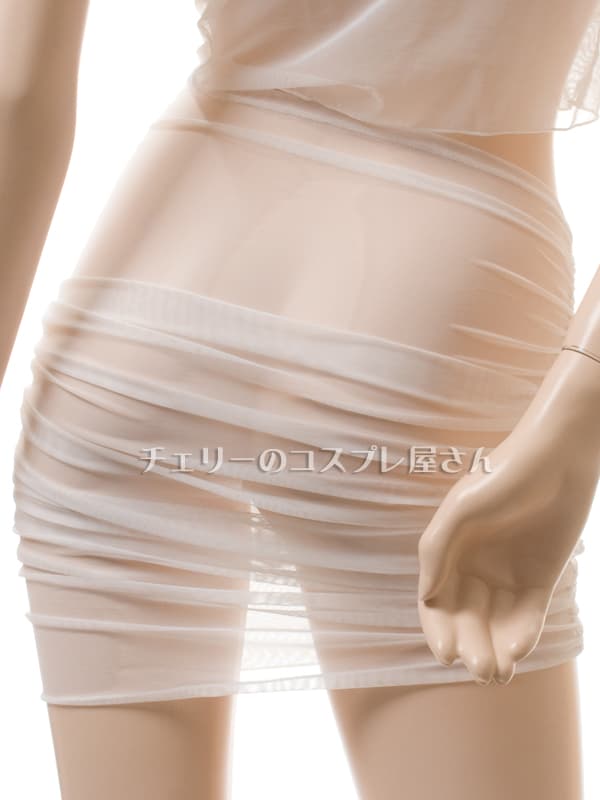 チューブスカートもシースルーで、ひだを多めにするとセミシースルー、ひだを少な目にするとシースルーと自在に透け感を調節できます!