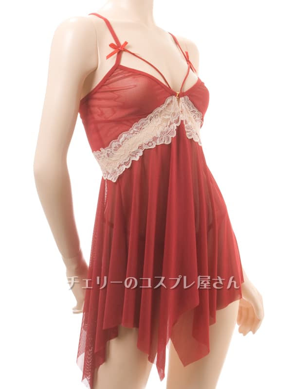前開きフロントホック クロスバック ベビードール・ワインレッド
