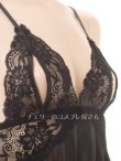 レースのオープンバスト ベビードール・黒