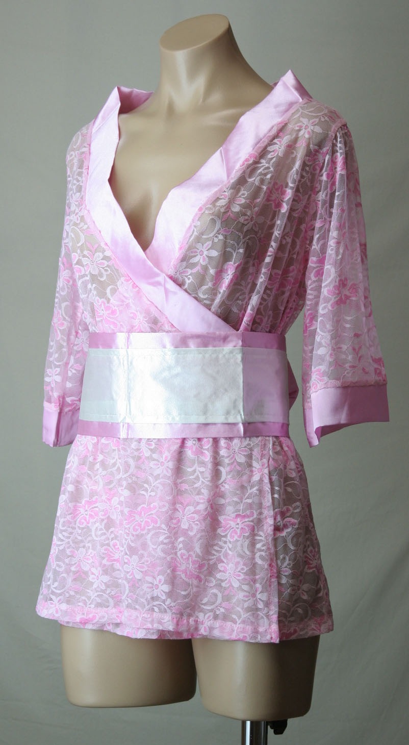 レースのシースルー和風ガウン・ピンク