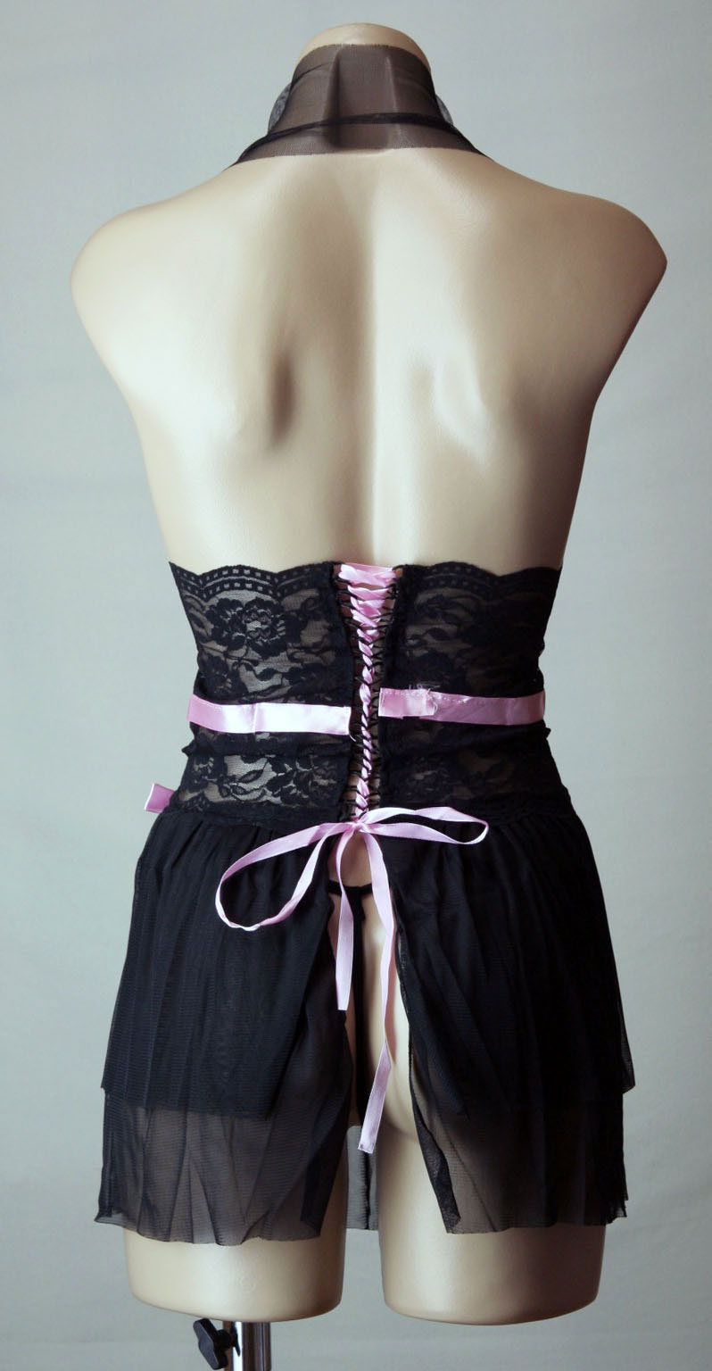 [シースルー ホルターネック バック編み上げ ベビードール]