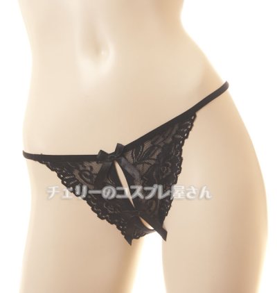 [ダブルリボン アジャストオープンクロッチGストリング・黒]
