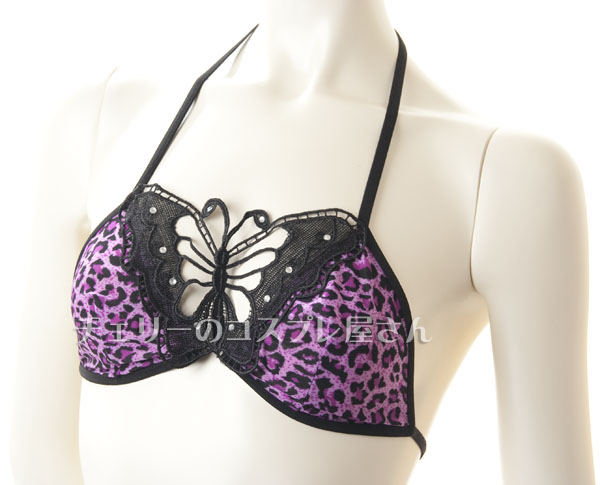紫ヒョウ柄のブラとショーツに光輝くパピヨンをデザインしたブラセット!