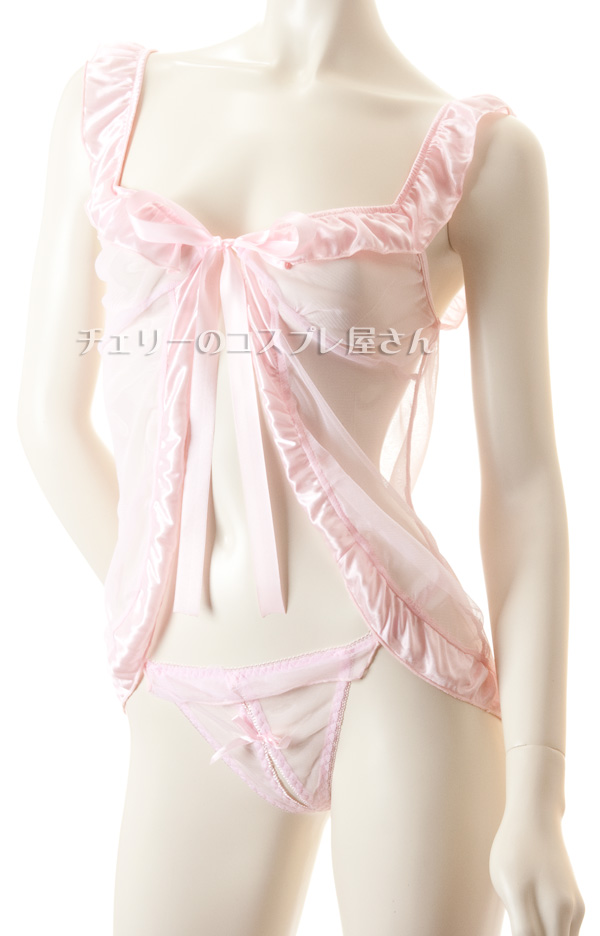 ピンクの前開きシースルーベビードール